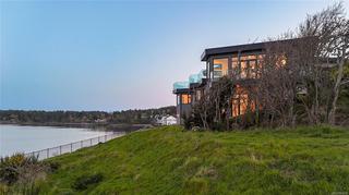 NO GST! Welcome home to a realm where the sea meets the sky and luxury meets nature. This oceanfront masterpiece in Saanich’s prestigious Arbutus neighborhood offers over 5,000 sqft of luxurious living. Perched on 1.5 acres with 350 feet of frontage, this residence revels in a 270-degree kaleidoscope of views stretching from Ten-Mile Point to the Southern Gulf Islands. The open-concept design features a sleek kitchen w/pristine white cabinetry, a large island, and floor-to-ceiling glass doors framing breathtaking vistas. The 470-sqft primary suite is a serene retreat w/a spa-inspired ensuite, freestanding tub, & vast windows capturing the ocean views. Four additional bedrooms & five bathrooms ensure ample space for family & guests. High-end finishes, a neutral palette, and elegant details create a timeless ambiance. W/ potential for a pool, guest house, or extensive custom landscaping, this abode offers the perfect harmony of urban convenience, natural beauty, & refined living.