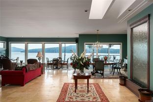 Welcome to 7318 Mark Lane. A serene oceanfront retreat in Willis Point. This remarkable property offers an idyllic oceanfront escape that dreams are made of. With its own private dock and breathtaking views from nearly every room, this coastal gem is a sanctuary of serenity. The home features extremely large rooms that provide a sense of scale that must be experienced to be fully appreciated. It's an ideal canvas for both luxurious living and entertaining. The home boasts vaulted ceilings that create a sense of space and airiness, adding to the overall grandeur of the property with awe-inspiring vistas of Brentwood Marina and Senanus. Expansive walls of windows ensure you never miss a moment of the natural beauty surrounding you. The kitchen is a chef's dream, featuring two islands and modern amenities. It's not just a place for cooking; it's a gathering spot where friends and family can enjoy the beauty of the surroundings. The primary suite is a true haven, complete with a walk-in closet, ensuite bath, and a walkout to your very own hot tub. Relax and unwind while enjoying the sights and sounds of the ocean. With a generous 1500 square feet of deck and patio space, outdoor living is a delight. Take in the captivating views, soak up the sun, or entertain guests in style. The warm, calm waters of Saanich Inlet provide one of Vancouver Island's most coveted waterfront settings, perfect for boating, kayaking, paddleboarding, and all your water adventures. Prawning and crabbing are just a short distance away from your private wharf. Deep moorage is available for boats of all sizes, making it easy to indulge in your marine passions.