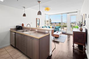 Terrific South West corner ONE BED and DEN condo with fantastic VIEWS of the inner harbour. The moment you enter this suite you will love the functional layout and views of the harbour from the massive floor to ceiling windows. Conveniently located on a quiet street in the heart of downtown, it's a quick walk to Chinatown, the harbour and all the shops you could ever need. This secure and solid STEEL & CONCRETE building has a luxurious feel and has a resident caretaker ensuring you always feel at home. There are rich hardwood floors, stainless steel appliances, breakfast bar with IN-SUITE LAUNDRY. It's pet friendly, allows rentals, all ages allowed, secure entry and has a UNDERGROUND SECURE PARKING space with additional storage.