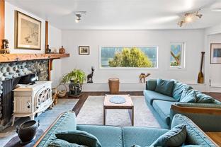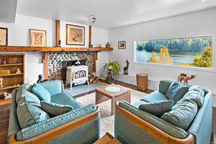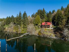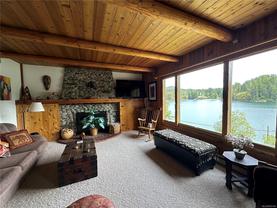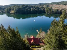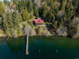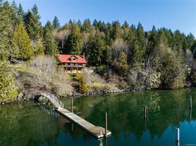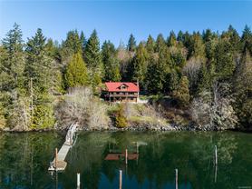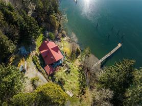 Tranquil Oceanfront Retreat with Deep Water Moorage! Embrace the calm of coastal living in this beautifully updated 1970s oceanfront retreat, set on nearly two private acres with approx. 230 ft of sun-soaked, south-facing shoreline. Enjoy serene views of Anderson Cove from all three levels of this 2600+ sq ft home. At its heart, a stunning kitchen with quartz counters, quality cabinetry, and panoramic ocean views flows effortlessly into open living and dining areas, all connecting to expansive decks for seamless indoor-outdoor living. The main floor offers a tranquil primary suite, with three additional bedrooms upstairs and a walkout lower-level family room with fireplace. Outside, a brand-new deep-water dock with “All Weather Safe” moorage provides easy access to the Strait. Whether kayaking at sunrise or relaxing at sunset, this West Coast haven invites you to breathe deeply, entertain freely, and live in harmony with the sea. Please do not enter the property without an appointment.