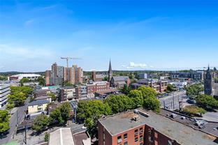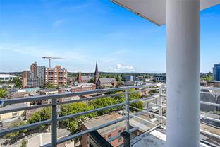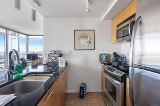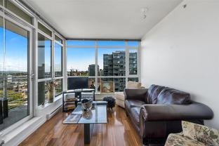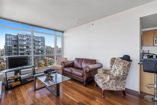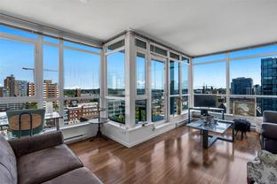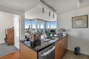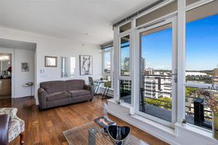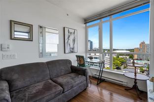 CORNER UNIT in the Heart of Downtown. Welcome to The 834, a well-built steel and concrete tower by award-winning Chard Developments, ideally located in the vibrant heart of downtown Victoria. Perched high on the 12th floor, this bright and modern corner unit offers sweeping panoramic views of the city skyline and distant mountains through its floor-to-ceiling windows — natural light and scenery at every turn. This thoughtfully designed 1 bed, 1 bath condo features an open-concept layout with engineered hardwood floors, overheight ceilings, an island-style kitchen, and a spacious private balcony for enjoying sunsets and city lights. The building is professionally managed and offers fantastic amenities, including a media lounge with projection screen, rooftop patio with BBQ area, bike storage, and more. In-suite laundry, separate storage, and secure parking are included. Pets and rentals allowed. Steps from shopping, restaurants, the Inner Harbour, cafes, and everything downtown Victoria has to offer — this is urban living at its finest.