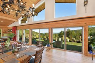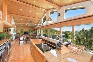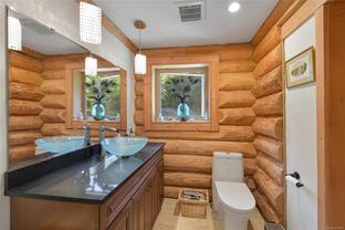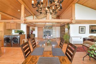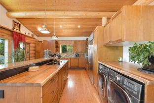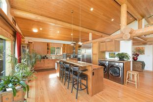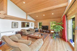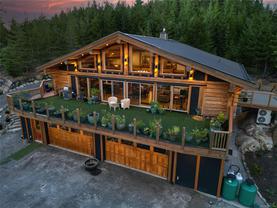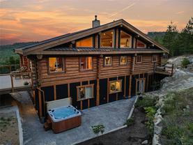 Elegant log home on a private 6.5+ acres of serene West Coast landscape offering peace and tranquility with stunning views! 2018 custom built sophisticated home is tastefully designed with luxurious finishes and attention to detail throughout. The open concept floor plan features 17'+ soaring vaulted ceilings with which flood the home with natural light through the floor-to-ceiling windows. The main level consists of a spacious open concept floor plan with master bedroom on the main with ensuite plus large deck, heated floors, chef's kitchen with high quality appliances, living room with cozy wood burning fireplace, spacious loft, 5-piece bathroom, sliding glass doors opening to a large West facing sun-soaked deck. Downstairs features a suite with 8'5 ceilings and separate entrance, bedroom with sliding doors out to the back yard with hot tub, large hobby/rec room. den and large 4-car garage. Bonus detached outbuildings and greenhouse!