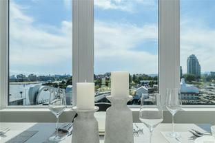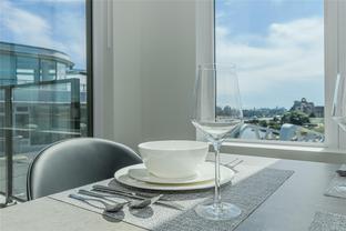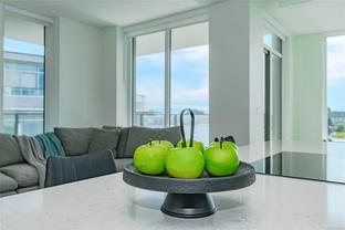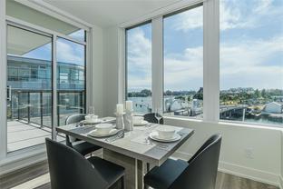 Welcome to the Pearl Residences, a premier boutique style waterfront steel & concrete building located in the heart of Victoria's vibrant & historic Old Town district. This 1,151 sq ft unit also offers 2 bedrooms + an office, a contemporary kitchen with a light colour scheme, high-end S/S appliance package, quartz countertops, beverage fridge, separate laundry room with sink & storage, air conditioning for ultimate comfort, and radiant floor heating in the bathrooms. The primary suite features an ensuite bath with dual sinks and shower plus walk-through closet. With parking for two, storage, bike storage, a fitness facility, kitchen equipped amenity room and pets allowed, this unit will have you ready to live the ultimate luxury downtown urban lifestyle! GST INCLUDED IN PRICE