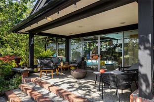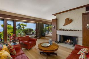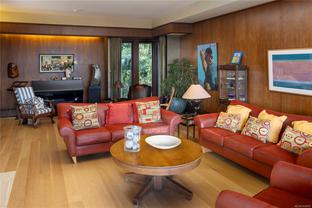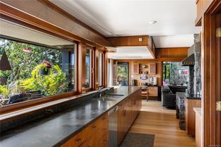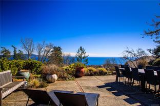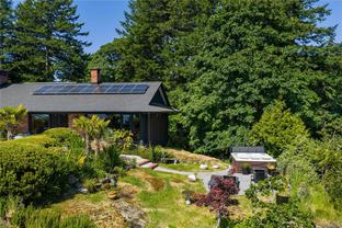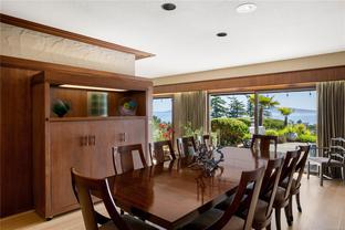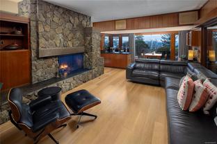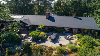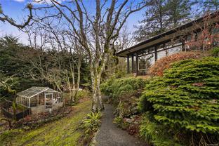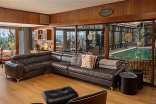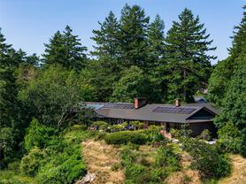 Local Treasure. One of the region’s pre-eminent mid-century landmarks on a private 1-acre with dramatic ocean views. This one-of-a-kind architecturally designed masterpiece was built in 1964 to exacting standards using quality materials including; black walnut, teak, white oak plus new rift-sawn white oak floors & features a hand painted Chinoiserie in the dining room. An entertainer's dream, the 6,600 sq.ft flows seamlessly on one level with ocean views.Large well-equipped kitchen with "espresso" granite countertops, teak cabinetry & indoor barbecue. 4 bedrooms with the option of a home office or in-law suite. A massive solarium contains the indoor pool with new Dryotron.Extensive outdoor living areas includes a hot tub. Mature landscaping & greenhouse. Upgrades include all mechanical & electrical systems, natural gas, roof, double-paned windows, insulation, solar panels & elevator. Live surrounded by beauty & convenience with quick access to shops & parks. Minutes to UVIC & Victoria.