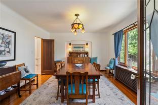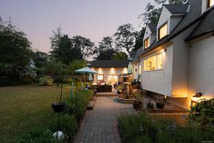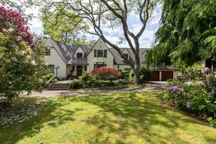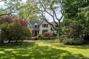 This stately Tudor home sits proudly on one of Uplands’ most coveted, tree-lined streets, offering timeless warmth & character enhanced by extensive renovations over the years. A custom fir doorway opens to a classic center hall plan with a generous sunken living room featuring 10’ ceilings, beautiful inlaid hardwood floors, and a stunning artisan wrought iron staircase. The formal dining room is perfect for elegant gatherings, while the updated kitchen, bathed in natural light, overlooks the private, WEST-FACING backyard w/ outdoor living spaces, a true year-round sanctuary. Upstairs offers three generous bedrooms, highlighted by a primary suite with a lavish walk-in closet and custom-built-ins that bring everyday luxury to life. The main-floor den is ideal for guests. The nearly 1,000sqft garage provides ample space for vehicles, storage, or hobbies. This gracious home blends old-world charm with modern convenience—a rare find in the heart of Oak Bay’s premier Uplands neighbourhood.