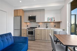 Sparrow, a thoughtfully crafted development by Abstract Developments, offers this inviting Junior One Bedroom home. Perfectly positioned just minutes from the city's most vibrant cafés, boutiques, and shopping districts, this modern residence features a sleek kitchen with locally designed millwork, stainless steel appliances, and quartz countertops. The unit also includes in-suite laundry, a deep bathtub, and a stylish floating vanity. Designed for comfort and efficiency, it boasts a heat recovery ventilation system that seamlessly blends fresh outdoor air with indoor air, helping to minimize heat loss during the winter months. Residents enjoy access to shared amenities, including a high-security bike room, a bike maintenance station, dog washing station, and an on-site Modo Car Share. Ideally located within walking distance of Quadra Village and Hillside Mall, main bus routes and a 30-minute walk to downtown, this home offers effortless connectivity to the entire community.