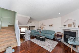 Charming 3 Bed + 3 Bath Townhouse in Oaklands! This thoughtfully designed home features a well planned layout that offers both privacy and functionality. Enjoy an updated kitchen and engineered hardwood floors in the living room and primary bedroom. The open concept kitchen is perfect for gatherings with family and friends, bright living room with a gas fireplace and access to a sunny deck.The spacious primary bedroom includes an ensuite and its own private deck. The top level room with vaulted ceilings, offers flexibility as a guest room, home office, or additional storage space. Ample storage throughout the home adds to its convenience and livability.Located just steps from Hillside Shopping Centre, Thrifty Foods, Walmart, Canadian Tire, and many more—everything you need is within walking distance. Easy access to public transit and close to schools of all levels. Come make it your DESTINED home!