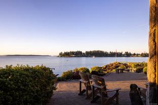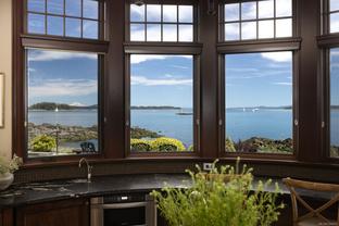 Welcome to this sophisticated West Coast waterfront retreat w/ sweeping views of the Gulf Islands & Mount Baker. This stunning stone residence features soaring ceilings & expansive windows, immersing you in the breathtaking surroundings. Designed for elegance & accessibility, it includes ground-level entry, main-floor guest suite & elevator. Main level boasts a circular kitchen w/ high-end appliances, butler's pantry, dining room & great room w/ 21-ft ceilings. A charming study w/ built-in shelves & coffered ceiling provides an ideal home office. The spiral staircase leads to a luxurious primary suite w/ circular balcony, reading nook, sauna & fireplace. From the WIC, access the enclosed sunroom w/ fireplace & balconies. The media room & family room w/ kitchenette offer additional leisure spaces. Outside, enjoy expansive terraces,private hot tub & direct access to a sandy beach. Fully fenced and gated, this prime location offers easy access to amenities, Airport, BC Ferries & marinas.