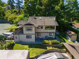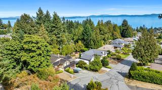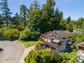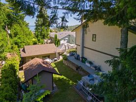 The hobbyist or tradesperson’s dream! Beautiful Custom Cordova Bay home with bonus two driveways and two double garages, at the end of quiet street! Fabulous sunny location with sweeping water views. Over 2670 sq ft of living space w/ 3 bedrooms & 3 baths, easy to suite if needed. Upstairs features large Primary, spacious 2nd bedroom & 2 full baths. Open concept kitchen to family room, formal dining, living room, 2 gas fireplaces. East facing ocean views from every window and sundeck. Lower level offers a bedroom, bathroom, laundry & huge flex room area. Cedar exterior with rubber F/P 50-year roof. Large private yard with additional garden shed, and extensive parking for RV, boat and extra vehicles. 200 Amp service. Close to several parks, beaches, recreation, golf courses, hiking trails & some of the best schools Victoria has to offer.