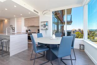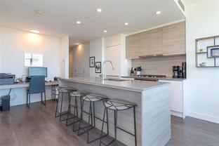 Experience all that the Bayview/Roundhouse neighborhood has to offer in luxury living. Beautifully appointed 2 bed/2bath 2019 built condo with upgrades that really make this unit unique. Over 1000 sqft, corner unit with great views, and wonderful light in all living areas. Open plan living areas with good sized balcony with access to living room and 2nd bedroom/office. Great kitchen with center island, office area, and in-suite laundry. Many custom upgrades! You will love the development that features resort style amenities, including concierge, guest suite, outdoor pool, fitness facility, lovely lounge, dog wash station and secure underground parking with separate storage, and bike storage. Steps to the waterfront walkway, the Songhees pathway, groceries and the beautiful blue bridge to all that downtown has to offer. Pet friendly, up to 2 dogs and 2 cats!! BBQ's allowed too! Quick possession available!