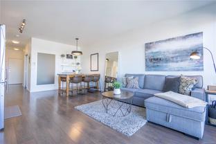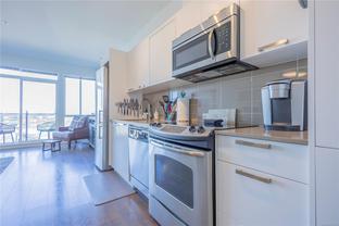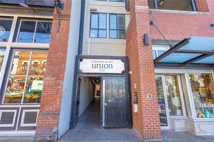 Top floor condo in the Union Building! This unit features unobstructed views of the city, mountains, and Victoria's Inner harbour, all from your private balcony. 9ft ceilings, with floor to ceiling north-facing windows bring in tons of natural light while not overheating the space. Quartz countertops, stainless steel appliances, and in-suite laundry are just a few of the perks of this 2014-build. Bring your furry family members! The building is pet-friendly with no size or number limits. Parking? Yes! One parking stall in the secure underground parking included. Storage locker? Yes! BBQs? Yes! A great opportunity to own a clean, bright, modern & pet friendly home in one of Victoria’s most walkable neighborhoods!