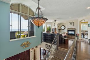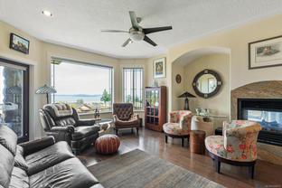 Location, space & stunning views! Welcome to Island View Place - a beautifully designed 6 bed (PLUS 2 den), 7 bath family home with sweeping vistas over Haro Strait to Mt. Baker. The gourmet kitchen boasts a gas range, and opens onto one of two east-facing balconies, ideal for morning coffee overlooking the ocean, or evening stargazing. The luxurious primary suite features a spa-inspired ensuite and generous walk-in closet. Set on a landscaped 0.35-acre lot with fruit trees, flower gardens, and a covered gazebo set for outdoor entertaining. Perfect for multigenerational living, this spacious residence includes a bright lower-level in-law suite. Updates include newer roof and gutters, dual hot water tanks, septic pump and more. Located on a quiet street with friendly neighbours, steps to Island View Beach and just 20 minutes to downtown Victoria. A rare opportunity to enjoy space, flexibility, and breathtaking natural beauty.