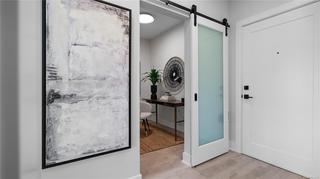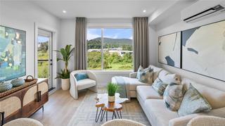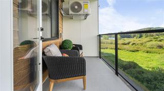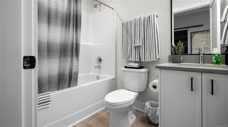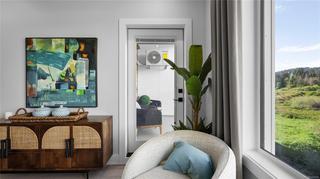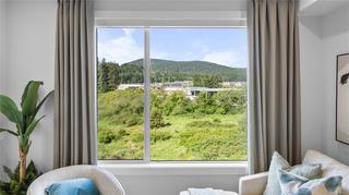 Ask about our $10,000 promotional credit incentive! Eider floor plan - Enjoy the peaceful park setting and water and nature outlooks from your living room and deck in this spacious 1 bed and den home. Ready for immediate possession, enjoy brand new construction with air conditioning, one (EV ready) parking space, and the convenience of a storage locker on your floor. Poised on the shores of Langford Lake, all homes at Trailside at the Lake come equipped with all the amenities for modern living. Bright and airy including large windows to showcase the views, 9 ft ceilings, luxury laminate flooring, spacious kitchens with quartz counters and a Whirlpool appliance package, window blinds and screens. Building amenities include cardio space, weight room, yoga space, lounge, & work from home office space. Just steps to the Ed Nixon trail and Langford Lake for outdoor adventures. You can also enjoy a short walk to YMCA, Eagle Ridge and City Center activity complex, as well as many amenities.