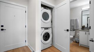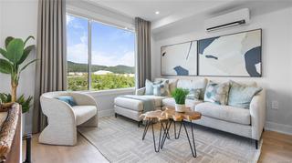 Ask about our $10,000 promotional credit incentive. The Wren plan - Enjoy the peaceful park setting and water and nature outlooks from your living room and deck in this spacious 2 bed and 2 bath End Unit home. Ready for immediate possession, enjoy new construction with air conditioning, one (EV ready) parking space, and the convenience of a storage locker on your floor. Poised on the shores of Langford Lake, all homes at Trailside at the Lake come equipped with all the amenities for modern living. Bright and airy, including large windows to showcase the views, 9 ft ceilings, laminate flooring, spacious kitchens with quartz counters and a Whirlpool appliance package, window blinds and screens. Building amenities include cardio space, weight room, yoga space, lounge, & work from home office space. Just steps to the Ed Nixon trail and Langford Lake for outdoor adventures. You can also enjoy a short walk to YMCA, Eagle Ridge and City Center activity complex, as well as many amenities.