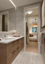 Welcome home to Oakwoods by Aragon! This stylish 1 bdrm/1 bath features 9’6” ceilings, 8’ solid-core interior doors & gorgeous herringbone-patterned engineered oak flooring. Chef-inspired kitchen includes a full-size gourmet GE Monogram appliance package with 5-burner gas cooktop, polished tile backsplash & Italian ash cabinetry with floor to ceiling pantry. Sleek folding, frosted glass doors open up your bedroom to the main living area which includes an expansive wainscoted feature wall. Walk-through custom closet with built-in drawer connects bedroom to spa-like bathroom with soaker tub & ample storage. Building features geothermal heating & cooling for year-round comfort, a well-equipped fitness centre & European-style courtyards with manicured gardens. Located in the Saxe Point neighbourhood of Esquimalt just minutes from downtown Victoria, Oakwoods by Aragon is the centre of a master-planned community that’s been over 10 years in the making. Move in this Fall!