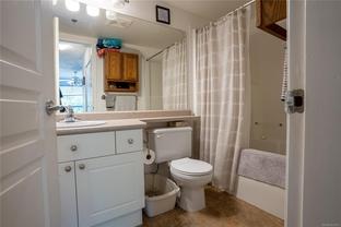 Welcome to this spacious south-facing 2-bedroom, 2-bathroom CORNER unit in the highly desirable 55+ community of Silverwood at Thetis Cove. Offering 1,072 sq ft of thoughtfully designed living space, this residence features a bright, functional layout with generous room sizes and an inviting gas fireplace in the living room. The kitchen includes ample cabinetry, an eating nook, and access to the dining area, making it ideal for everyday living and entertaining. The primary bedroom boasts a walk-in closet and a full 4-piece ensuite, while the second bedroom is perfect for guests or a home office. Enjoy the outdoors from your large covered balcony with space for seating and plants. Additional highlights include in-suite laundry, secure underground parking, and access to building amenities such as an exercise room, games room, workshop, guest suite, and greenhouse. Located steps from shopping, dining, transit, scenic Thetis Lake trails, and within walking distance to the Gorge Waterway, this home combines comfort, convenience, and community living.