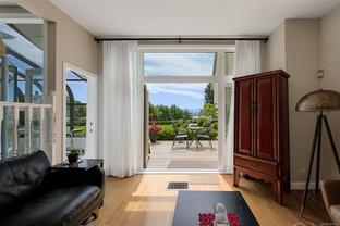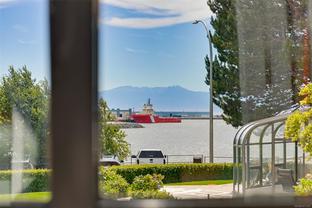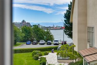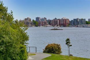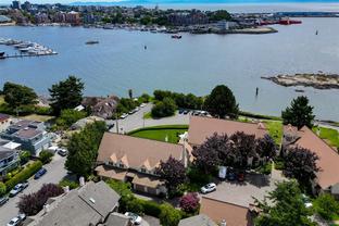 AMAZING LOCATION! Experience waterfront living with breathtaking views of Victoria Harbour and the snow-capped Olympic Mountains from this beautifully maintained townhome. Watch cruise ships come and go, and enjoy stunning sunsets from your sunroom, full-length patio, and all principal rooms. This bright, two-level home features hardwood floors, has a new kitchen with new cabinets, quartz countertops, backsplash, and all new stainless steel appliances including a high end induction cooktop. Other upgrades include a new gas fireplace, laundry room with new full size washer and dryer, sunroom, light fixtures, fresh paint, and much more. An attached single-car garage adds convenience. Located directly on the scenic Songhees Walkway, you're just steps away from downtown, West Bay, historic Esquimalt, and everyday amenities. Set within Rainbow Estates; a well-maintained community on nearly an acre of south-facing waterfront. Live on beautiful Victoria Harbour.
