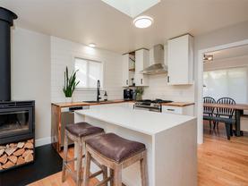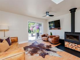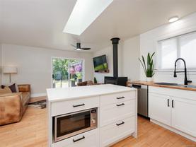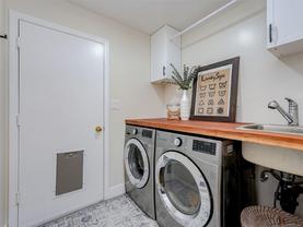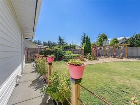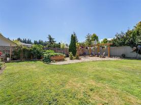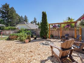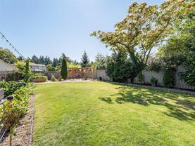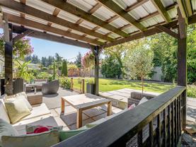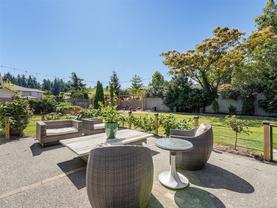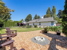 Welcome to this beautifully updated and meticulously maintained one level rancher in sought-after Sunnymead! Offering a great floor plan on a 10,125 sq ft lot with 3 bdrms, 2 bthrms & double garage. Notable items include a primary bedroom with spa-like en-suite, a cozy fireplace in the living room & a new high efficiency wood stove in the family room. The heart of the home is the modern kitchen that adjoins the family room and provides direct access to the incredible southwest facing back yard. Here is your private & quiet oasis with patios, gardens, veggie beds, fruit trees & a fenced dog run! New features also include: interior paint, window coverings, carpets, light fixtures, h/w tank, updated kitchen with new appliances, bathrooms, washer & dryer, landscaping & irrigation. Plenty of storage with the garage, sheds & huge crawl space. Close proximity to Broadmead Plaza, Lochside bike trail, beach access is a 3 min walk, excellent schools & Mt Doug Park. This is a move-in ready gem!