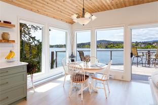 New price for this Oceanfront property with foreshore and dock. Cottage style home, updated for year round living, has large windows to capture lots of light and the 180° ocean views from living areas, kitchen and primary bedroom. Also on the main level a second bedroom plus den/bedroom, 2 full baths, as well as huge bonus room, could be made into a secondary suite (making non- Canadian purchase possible) Lower floor has a studio/hobby/bedroom, storage and a workshop. Triple carport, one extra high for boat or RV. Very private, tranquil .60 acre property offers many areas to relax, the patio in the fenced landscaped garden, or sit on the large ocean side deck and watch sunsets and all the harbour activities, Orcas, and other marine life. Enjoy world-class salmon fishing and all kinds of marine sports from your beach and dock, as well as the trails and beaches in the famous 3600 ac. East Sooke Park minutes from your back yard.Call or text Jacqui (1) 250-886-8191 or email jacquithompson@shaw.ca