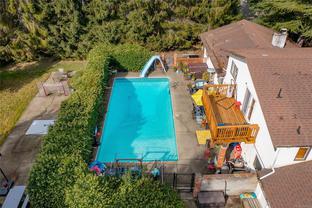 Country living par excellence. Minutes from the ocean as well as downtown LA and all that offers in brand new as well as West Shore legacy services and amenities. This totally flat two acre family (or hobby farm?) paradise offers so much; large home recently painted inside and with a new west facing deck off primary bedroom, in ground pool in west facing back yard party/bbq area also has a hot tub, massive play/sports areas in rear fields, wired three stall barn in midst of fully fenced rear section of lot that runs parallel to Galloping Goose Regional Trail, four beds on top floor, open concept family room on main leading to large newly painted kitchen as well as formal dining room w fireplace. Sprawling main floor offers large family room, formal dining and LR with fireplace. Downstairs is a happy family's dream set up for games, movie nights and sporting events with theatre/arcade like design. Another bedroom, wood stove, tons of storage and exterior egress. Spacious garage as well.