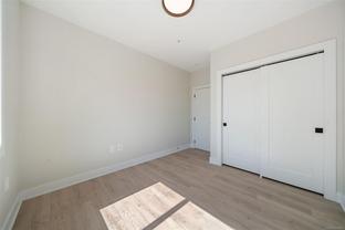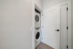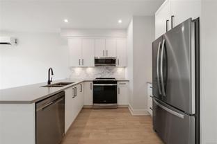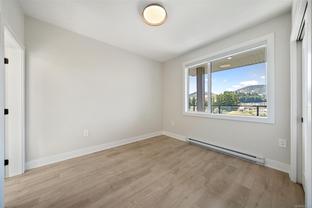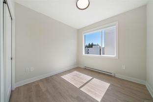Ask about our $10,000 credit promotion - Woodpecker Plan - Enjoy the convenience of end unit ground level living, with storage on your floor, and an elevated deck for privacy. Tranquil nature outlooks from this spacious 2 bed and 2 bath floor plan laid out for privacy, and move in right away to enjoy new construction with air conditioning. Poised on the shores of Langford Lake, all homes at Trailside at the Lake come equipped with all the amenities for modern living. Bright and airy, including large windows to showcase the views, 9 ft ceilings, laminate flooring, spacious kitchens with quartz counters and a Whirlpool appliance package, window blinds and screens, as well as one (EV ready) parking space. Building includes cardio space, weight room, yoga space, lounge, & work from home office space. Just steps to the Ed Nixon trail and Langford Lake for outdoor adventures. You can also enjoy a short walk to YMCA, Eagle Ridge and City Center activity complex, as well as many amenities.