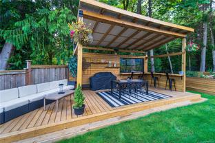 West Coast Pristine Home in the desirable SunRiver.The moment you step inside,you'll be greeted by a spacious foyer, 9ft ceilings,hardwood floors,& a cozy gas fireplace.The open-concept layout is perfect for both family living & entertaining,with a bright kitchen,a luxurious separate dining room & French doors opening onto a private,sunny deck.Upstairs,you’ll find a large primary suite with a walk-in closet & ensuite,along with 2 bedrooms.A 1bed self-contained suite downstairs adds flexibility.A double garage & abundant parking. Nestled against DeMamiel Creek,the backyard is private & low-maintenance,beautiful landscaping,full fencing,& an oversized deck.A new covered patio built with pressure-treated wood,& a Redwood live-edge countertop. Large double-glazed window frames serene views of the creek &enchanted forest.Located just min from the Sooke Potholes,Whiffin Spit Park,& downtown Sooke with shopping,restaurants,schools close by—this home truly offers the best of West Coast living.