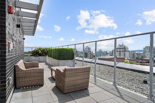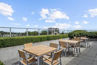 You’ll love living in this elegant south-facing condo at The Escher, located in the heart of Victoria—just steps from shops, cafés, restaurants, and the Inner Harbour. All Furniture included in purchase price, so its move-in ready! This beautifully designed suite features a modern open-concept kitchen with a large island and bar seating, an office nook, heated bathroom floors, and in-suite laundry. Sunlight pours in through the south-facing windows, offering views of downtown, Pioneer Square, and the Cathedral. The Escher offers exceptional amenities, including a rooftop terrace with BBQs and sweeping views of the city and ocean, an on-site caretaker, secure bike storage with a tune-up station, and a pet washing area. From this condo, you’re close to everything the city has to offer—but just a short walk to Beacon Hill Park and Dallas Road Beach. Whether you're looking for an urban lifestyle or a smart investment, this pet-friendly condo is the perfect fit. Come see it today!