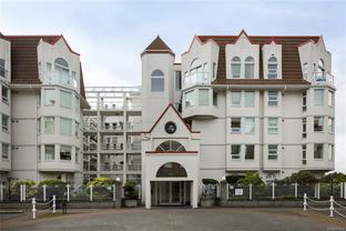 Soaring 11ft ceilings set the tone for this chic & spacious Corner Penthouse in prestigious Royal Quays, located in the heart of the Songhees. With 1,572 sqft of updated living space, this 2bed, 2bath home blends style & comfort w/Ocean glimpses w/float planes & kayaks passing by & downtown lights sparkling at night. A cozy gas fireplace warms the winters & 4 balconies invite you to soak in the surroundings year-round. The ideal layout places the bdrms on opposite sides of the condo, offering both privacy & functionality. Additional highlights incl. a functional kitchen, large laundry room & underground parking stall w/storage locker. Step outside & experience the Songhees lifestyle—walk the waterfront trail from West Bay Marina to downtown Victoria, w/local favourites like Spinnakers & Boom+Batten just steps from your door. Royal Quays offers an exceptional blend of luxury, convenience & community. A rare opportunity to experience penthouse living at its finest, along the waters edge.