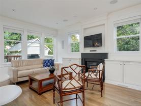 This exquisite Oak Bay residence blends timeless character w/ modern luxury. Built in 1912, this Arts & Crafts style home was masterfully reimagined & expanded in 2007 to exacting standards. Every detail has been meticulously maintained, showcasing white oak hardwood floors, a charming bay window w/ built-in window seat, 2 gas fireplaces, pot lighting & custom built-ins. The expansive skylit kitchen is a chef’s dream, featuring high-end appliances & generous workspace. Designed for comfortable family living & effortless entertaining, the home offers media & games rooms, a multi-zoned sound system & energy-efficient geothermal heating & air exchange. With 4 beds/4 baths, the flexible floor plan includes rough-ins for a nanny/in-law suite. The back deck & private balcony off the primary suite overlook a landscaped, irrigated fenced garden. Ideally situated on a quiet tree-lined street with a Walk Score of 91. Just steps to Oak Bay Village, the Rec Centre, top-rated schools, shops & more.