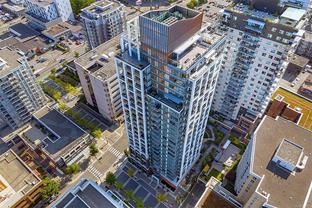 Hudson Place One by Townline - a 25-storey landmark tower featuring contemporary architechture, intelligently-designed interiors, 11,000+ sf of exceptional indoor/outdoor amenities & downtown Victoria's highest elevated views. This sophisticated and rare 20th floor one-bedroom home offers unparalleled quality with concrete construction, air-conditioning, high-end finishes & oversized outdoor living spaces, carefully planned for super convenient urban lifestyle. Amenities include a fully-equipped fitness centre, infra-red saunas, yoga studio, dedicated workspace, large common area patio, guest suite, playground and rec room. Additional features include concierge service, bike storage, a storage locker, and secured underground parking Situated in the heart of the vibrant Hudson District, you'll enjoy doorstep access to an array of artisan shops, daily conveniences, services & the Victoria Public Market - walking distance to the best restaurants, stylish boutiques & scenic inner harbour.