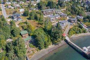 BUILDERS & DEVELOPERS ALERT! Rare opportunity to secure a waterfront lot in the heart of Sooke’s town core. This private .46-acre panhandle property offers approximately 70 feet of ocean frontage and is surrounded by newer high-end homes. The gently sloping terrain is perfectly suited for a rancher with a walkout basement or a two-storey design to capture sweeping views. A roughed-in switchback path provides convenient beach access. With sewer and municipal water at the lot line, this site is ready for your vision—whether it’s a custom dream home or a revenue-generating waterfront investment. Just steps to a waterfront park, boardwalk, local shops, restaurants, and transit, the location can’t be beat. Updated zoning under Bill 44 and SSMUH legislation allows for up to 4 units (buyers to verify directly with the District of Sooke). A spectacular development or lifestyle opportunity awaits!