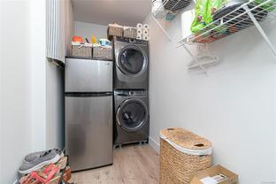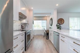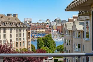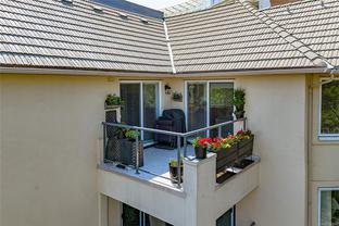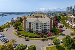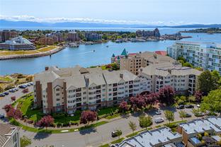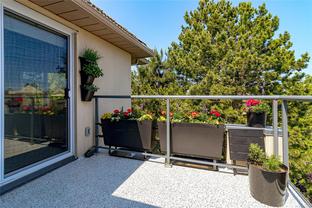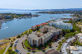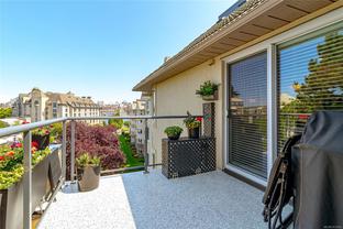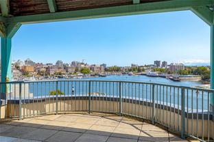 FEELS LIKE A HOUSE not a top floor Condo! MUST SEE PRIVACY & steps to ocean & entertainment - Stunning Top-Floor Gem w/ Harbour Views may be the 1. Lovingly updated over 1530+ sq.ft. CORNER with BOW WINDOW, thoughtfully brought up to today's standards ~ everything is brand new w/ light in from 3 sides amidst treetops will ensure PEACE of Mind. Quality Shines through w/Gourmet kitchen + quartz counters, wine/coffee bar & pantry. Spa-like ensuite w/ heated floors + 2-person shower. Generous primary suite opens to the deck – perfect for morning coffee or sunset BBQs! Premium Features w/Wide-plank floors, gas fireplace, 2-zone heat/AC, epoxy deck & insuite laundry + storage & utility. Unbeatable Songhees Lifestyle ~ Steps to Galloping Goose/Songhees trails! Walk to downtown dining (8 mins) & Parliament (15 mins). Building perks: secure parking + bike storage, locker, landscaped courtyard, lounge & rooftop deck w/ harbour panoramas! Move right into this immaculate West Coast haven – furniture negotiable