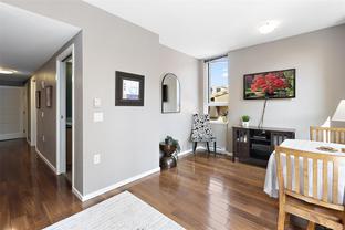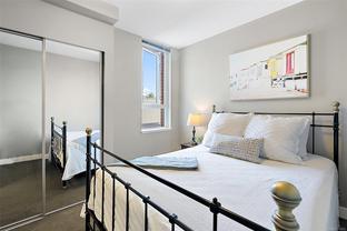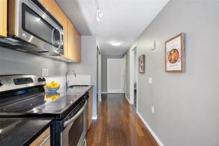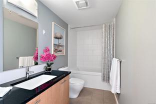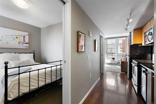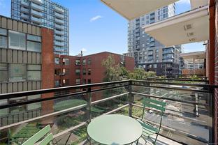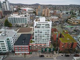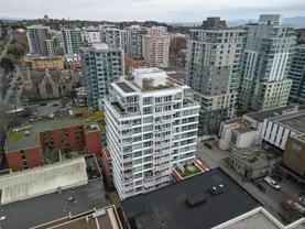 Welcome to The 834, a sought after steel and concrete building by award-winning Chard Developments. This bright and contemporary one bedroom corner unit sits at the quiet, back of the building, offering extra windows for natural light and a wonderful cross breeze. Built in 2011, you will enjoy modern touches with 9 foot ceilings, a modern kitchen with quartz countertops, stainless appliances, in-suite laundry, while the sunny deck provides a perfect spot to unwind. A separate storage locker is also included. First time on MLS! This highly sought-after unit was originally secured by the owner during the exclusive VIP presale. Residents enjoy access to fantastic building amenities including a rooftop patio with panoramic city views, a media lounge, and BBQ area. Pets and rentals welcome, this home offers incredible flexibility for first time buyers or investors. Just steps from Victoria’s best cafes, restaurants, and shops, with car share options nearby, this is urban living at its best.