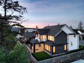 Presenting 2045 Pinehurst Terrace – a breathtaking custom-built home situated on one of Bear Mountain Resort’s most exclusive streets. Located at the quiet end of a cul-de-sac on the highly sought-after view side, this remarkable residence is elevated above the lush expanse of Goldstream Park. Towering arbutus trees frame a picture-perfect natural backdrop, creating a tranquil oasis that is both private and captivating. This stunning 3,348 sqft home offers 4 bedrooms, a dedicated office, and 3 opulent bathrooms, with every inch thoughtfully designed for luxurious living. Upon arrival, a beautifully paved brick driveway and a stately portico entryway lead you to a grand front door, featuring sidelights and a transom window that flood the space with natural light. Inside, rich custom millwork, soaring vaulted and beamed ceilings, and a dramatic natural gas fireplace with a timeless stone surround set the tone for the home’s elegance and warmth. At the heart of the home lies a magazine-worthy chef’s kitchen, featuring bespoke cabinetry, top-of-the-line Fisher & Paykel integrated appliances, and an expansive 8-foot by 4-foot island. An archway leads to the butler’s pantry, outfitted with custom cabinetry, a built-in convection speed oven/microwave, and a built-in coffee machine—perfect for everyday convenience and entertaining. Designed with family in mind, the spacious, open-concept main level incorporates a generous living area, office, and the chef’s kitchen. Upstairs, you’ll find the primary suite with French doors, a built-in vanity, dressing room, and a lavish ensuite. A private southwest-facing deck extends from the primary suite, offering breathtaking views of the lake, ocean, and surrounding mountains. The secondary bedrooms are spacious, featuring closet organizers with built-in drawers. A large bonus room, wired for media, completes the upper floor. Additional highlights include a large laundry room and a double garage.