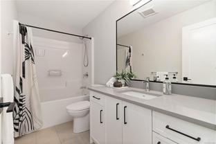 Where Sunrises Meet Sunsets: Panoramic Views from Every Angle. Enjoy 180° ocean, lake & mountain views from this stunning “Built Green” home! Wake up to sunrises over the city & Olympic Mountains,& end your day w/ sunsets across Langford Lake. A bright, open, & thoughtfully designed layout w/ a sleek kitchen, island breakfast bar, upgraded appliances & seamless flow to family room & yard that functions perfectly as a family or executive style home. Separate dining & living rooms with cozy gas fireplace. Ground-level 1-bed suite with sunny & private patio—perfect for Airbnb, long term tenant, or extended family. Modern comforts include heat pump, hot water on demand, gas forced air, double garage with EV charger. Custom garden beds enhance the curb appeal. Certified Built Green for energy efficiency and extended mortgage options (30 yrs for FTHB, 35 yrs traditional). The new "WellHaus" just opened down the street. Views, income potential & sustainable design—all in one exceptional home.