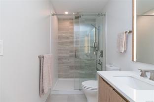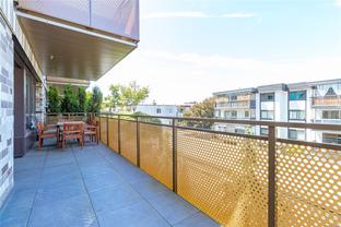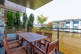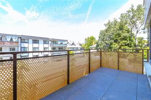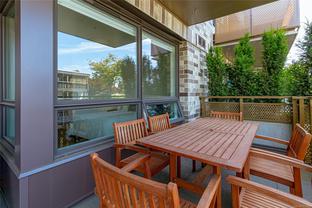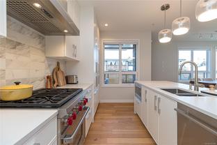 You'll love this sophisticated and well-appointed 2br 2 bath + den condo is Victoria's charming Rockland neighborhood. This bright corner unit offers 1,247 sq. ft. of indoor living space with a large west facing 240 sq. ft. deck fit with built in radiant patio heater. The gourmet kitchen boasts a European appliance package, featuring deluxe Wolf gas range and Fisher & Paykel refrigerator and double-drawer dishwasher. Secure parking space, storage locker, and bicycle lock-up. The complex is nestled among stately Garry Oak trees on a quiet street. A leisurely walk through this neighborhood will take you past some of Victoria's most charming old character homes. It's an easy walk to downtown, Cook Street Village and the Dallas Road Waterfront, and there's a protected bike lane at your doorstep that connects to downtown and beyond. If you're looking for a luxury feel in a quiet, lovely neighborhood, this could be the one!