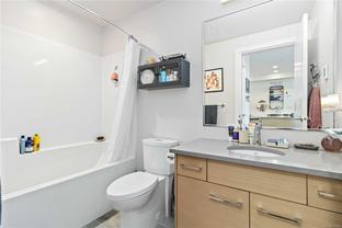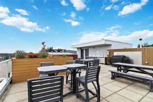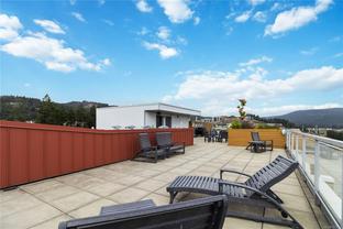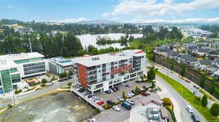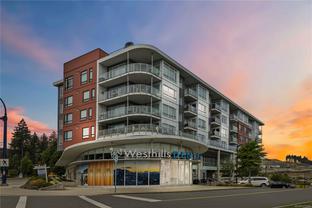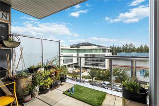 COVETED LAKEPOINT ONE, in the desirable Westhills neighborhood, just steps from Langford Lake, parks, trails, library, rec center & only minutes to shopping, restaurants & all that the vibrant Westshore has to offer! This boutique building features: pet wash station, car wash stall, secure parking, storage locker, kayak/paddleboard storage & rooftop patio with seating, tables, BBQ & sweeping views over the pristine waters of Langford Lake to Bear Mountain. Be impressed by the bright, open floor plan, gleaming floors & abundance of light thru a profusion of windows, enhanced by airy 8'10" ceilings. Chef's kitchen with quartz island/breakfast bar, ceramic tile backsplash, undermount sink & stainless steel appliances. Inline dining rm & spacious living rm open to large deck - perfect for your herb garden & relaxing with your morning coffee. Generously sized bedroom with cozy, genuine cork flooring & large closet. Luxurious 4pc bathroom with heated tile floors. Bonus: in-suite laundry!