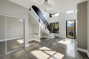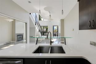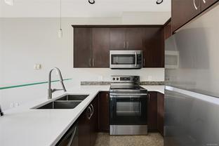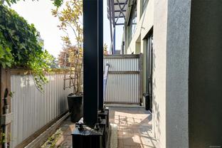 Welcome to Fusion, a sought-after steel-and-concrete building in the heart of Vic West. This bright and stylish townhouse style two-level loft offers the perfect balance of modern updates, privacy, and vibrant city living in a family friendly neighbourhood. Soaring 20’ ceilings and dramatic windows flood the entire homes open living plan with natural light. Freshly painted throughout, the main level features newly polished concrete floors, freshly upgraded kitchen with newer appliances and quartz countertops. Upstairs, retreat to your private loft with new carpets and a versatile flex space ideal for an office or guest area. Outside, enjoy a fully fenced patio surrounded by greenery. Further updates include the washer, dryer and hot water tank. A pet-friendly building with bike storage, parking just steps from your door, a well run strata and newer roof all ensure peace of mind and a move-in-ready home. With no one living above or below you, this is more than a condo—it’s a lifestyle.