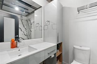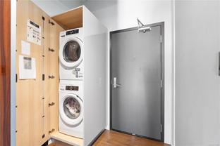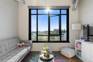 Welcome to The Jukebox – Live in style in this 5th-floor 1-bedroom condo in a solid steel-and-concrete building. South-facing floor-to-ceiling windows flood the space with natural light, highlighting industrial touches like exposed ductwork, concrete walls, hardwood floors, quartz countertops, and premium stainless steel appliances. The well-designed layout features frosted glass sliding doors, a spa-inspired bathroom with a ceiling rain shower and in-suite laundry. Enjoy amenities like a fully equipped fitness center, bike storage, and shared zen garden. With the remaining balance of the 2-5-10 New Home Warranty and a prime location steps from dining, shopping, and all downtown has to offer, this condo blends style and convenience. Parking is available on a monthly basis. Reach out for more details!