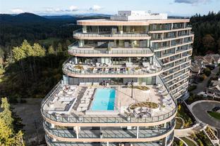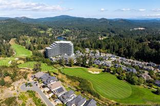 This exquisite 11th floor, corner suite, 2 bedroom, 2 bathroom condo boasts breathtaking west facing views over the 18th fairway and Mt. Finlayson. Premium features include oak flooring, 10ft ceilings, floor-to-ceiling windows, a high-end Bosch appliance package, quartz countertops, and elegant Italian cabinetry. The living room, with a cozy gas fireplace, opens to a wrap-around 600+sq ft sun-drenched patio - perfect for entertaining or savoring sunsets. The primary bedroom offers a walk-through dressing closet and spa-inspired ensuite plus a bonus home office w/golf course views. Enjoy world-class amenities: Concierge service, Grenoble Sky Lounge, Business Center, Fitness & Yoga Studio, Outdoor Pool and Sundeck. Complete with 1 oversized parking stall, storage locker, bike storage, and a dog wash station, this residence offers a luxurious, resort-style experience. Don’t miss your chance to own one of the most coveted floorplans One Bear Mountain has to offer!