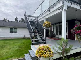 Located at 164 White Pine Rd in View Royal on a quiet cul de sac. This Immaculate and well thought out 2010 year built Custom Oceanfront Home (Borders Helmcken Centennial Park,Small Riparian Area boasts 3200+sqft of pristine living space. Main living area up, 2 bed legal suite down + Garage professionally converted into exceptional office space with the reception area, office and 2 pcs bathroom. Lots of storage, massive 6 feet high, 26' x 40' Crawl space with workshop area under home, normal access door) All of this sitting on .22 of a flat manicured, landscaped yard with room for canoes and paddle boards on the low bank water access. Minutes walk to all amenities, Park, Schools and of course Helmcken Hospital. Attention to detail is appreciated throughout as features include on main living area offering an excellent set up for people who like to entertain (or just relax) with a open Living/Dining area and gourmet style Kitchen with 10' high ceilings all facing the water view. Living room has classy fireplace, double french doors to massive 27'x12' full length deck with hot tub. Impressive master bedroom also accesses the sun deck, so main living off the back. Master has walk in closet, nice ensuite with full walk in shower. 3 other bedrooms on main are located on road side of house, one is used as a gym, there is a guest bedroom and a spa room set up. So plenty of space, (Assumable Mortgage, Blend or Take over? Call for Details ) this is a must see home. Listed at $1,999,900.(Overnight notice is appreciated for showings)