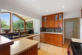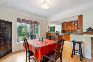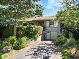 Welcome to 747 Falkland Road in the sought after South Oak Bay neighbourhood! This 5 bedroom, 2 bathroom home sits on a private 9000+ sq ft lot in amongst the beautiful mature trees. Entering you are welcomed by beautiful oak floors that flow throughout the large living room with cozy fireplace, open dining area, and good sized primary bedroom and a second bedroom or office. The custom built kitchen overlooks a large sunroom with huge windows to let in the sunshine while enjoying your morning coffee that includes custom built in benches with handy storage, overlooking the private and secluded gardens. The lower level offers 3 more bedrooms including a full 1 or 2 bedroom inlaw suite with own laundry and plenty of storage, attractive options for families. Additional features include a 1 year old heat pump/AC unit, built in shelving and desk space in the 2nd bedroom. This is a great family home that offers functionality, and an outdoor space that is hard to come by!