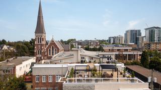 ***OPEN HOUSE SATURDAY 2-4*** Stunning wooden beams, soaring ~18' vaulted ceilings, and the most beautiful windows in this two story top level loft that feels like a penthouse! Welcome to The Palladium. A heritage conversion with character and style. This home offers open living/dining, a flex bedroom/office, and full bath on the main, a lofted primary retreat with ensuite + walk-in. Upgrades include a sleek glass-door shower and premium designer fan. This heritage jaw dropper comes with in-suite laundry, secure bike storage, and a stunning rooftop that's made for BBQs and sunsets. The building is pet friendly and rental friendly, and has proven long-term investment income, along with past historical short term rental eligibility. Optional furnishings make this an easy turn-key purchase. Cafés, theatres, groceries at your doorstep, with bikes, transit, and car-share all close by. This is where volume, light, and lifestyle meet — a rare chance in the heart of Victoria.