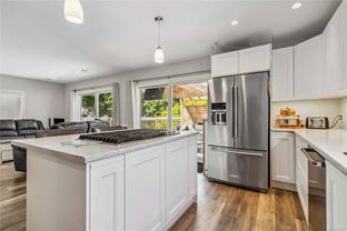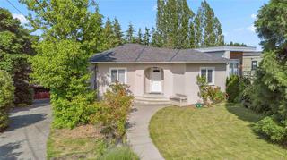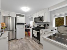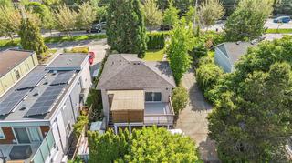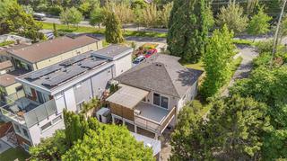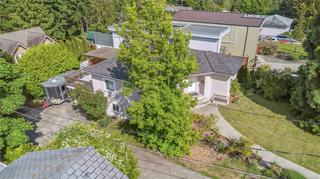 Tucked far back from Craigflower Road, this professionally renovated 3-bedroom home (plus a separate 1-bed suite) blends serenity and convenience—JUST STEPS TO GORGE PARK! Step inside to a heated tiled entry that continues into the main bathroom, a sunlit living room, and a modern kitchen with a gas stove in the island, crisp white cabinetry, and stainless-steel appliances. Two sets of patio doors lead to a 24x26 ft deck, perfect for entertaining. The lower level, accessed by an original 1947 spiral staircase, adds vintage charm. It features a flexible office space and a third bedroom. The totally updated 1-bed suite, with its own private entrance, is an ideal mortgage helper. Smart living at its best—control the lights and thermostat remotely with the Lutron app for effortless comfort and energy efficiency. Additional highlights include upgraded mechanics, a huge workshop, and a carport, all set in a quiet location close to shops, schools, and transit. Schedule your viewing today!