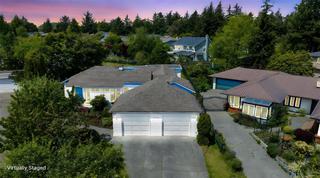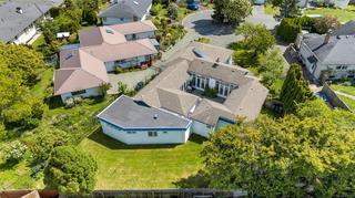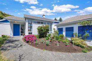 Welcome Home to this sun-drenched oasis! Situated at the end of a secluded cul-de-sac in the Arbutus area of highly desirable Gordon Head neighbourhood, located on a private fenced lot, this rancher, 4216 Wakefield Pl has floor to ceiling glass with French doors opening out from living & dining rooms overlooking a central enclosed courtyard with rose garden & patio that infuses a light and airy feeling into entire home. Pride of ownership is evident. Many updates since 2018. Spacious primary with walk-in closet and 6-piece ensuite including soaker tub is located in its own wing of the house for blissful quiet and privacy. 2 more spacious bedrooms plus a study/craft/extra bedroom perfect for working from home. 3 more baths round out the versatile interior of this wonderful custom built home. Oversize double garage with electric doors, heat pump heating/air conditioning and large hot water capacity are just a few of the additional bonuses this home has to offer. Suite potential.
