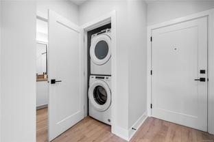 Ask about the 10k credit promo! 5th Floor has this home set perfectly to enjoy the peaceful park setting and water and nature views from your living room, kitchen and deck. This popular floor plan is 2 beds and 2 baths and ready for immediate possession. Enjoy new construction with air conditioning, one (EV ready) parking space, and the convenience of a storage locker on your floor. Poised on the shores of Langford Lake, all homes at Trailside at the Lake come equipped with all the amenities for modern living. Bright and airy, including large windows to showcase the views, 9 ft ceilings, laminate flooring, spacious kitchens with quartz counters and a Whirlpool appliance package, window blinds and screens. Building amenities include cardio space, weight room, yoga space, lounge, & home office space. Just steps to the Ed Nixon trail and Langford Lake for outdoor adventures. Also, enjoy a short walk to YMCA, Eagle Ridge and City Center activity complex, as well as many amenities.