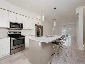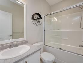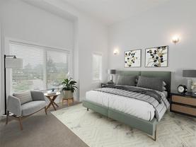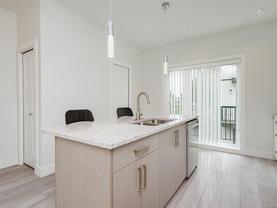 Convenience and affordability meet in this bright, spacious end-unit townhome, centrally located near shops, restaurants, schools, trails, and transit. Offering 2 bedrooms and 2.5 baths over three levels, the main floor features open concept living with a large living room, electric fireplace, dining area, and a stylish kitchen with white cabinetry, quartz countertops, and stainless-steel appliances. Enjoy two decks- including one off the kitchen. Upstairs boasts high ceilings, two bedrooms each with an ensuite, plus laundry for added ease. The entry level offers a versatile flex space—ideal as an office, family room, or gym—and garage access. A heat pump ensures year-round comfort, while a private patio and small garden area complete the package. A perfect blend of function, style, and location!