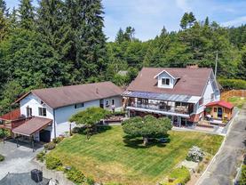 Coastal Ocean View home, detached suite, double garage plus workshop on 1/2 acre. Extensively renovated; wide plank hardwood floors, high end chef's kitchen, 6 burner gas range, custom tile, quartz counter tops. Features original brick fireplaces in the living room & the family room. The main house boasts 6 bedrooms and 3 full bathrooms, blending timeless charm and modern luxury. Originally build in the 1930's, significantly expanded and raised in 1979-1981. The current owners have added beautiful touches to make this home amazing. Bonus; 800 square foot 2 bedroom private suite/home business, with a deck capturing endless ocean views. Two driveways, one for RV & boat parking leads to a 800 sq ft shop. Bunk house, beautiful gardens, fenced and cross fenced to keep kids and pets safe. Just a few minutes to Sooke Village, schools, beaches, parks & all levels of recreation. 20 minutes to the Westshore. A rare coastal estate offering space, flexibility & stunning vistas.