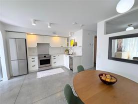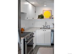 This stylish, south-facing patio suite with direct outside access—ideal for pet owners—is a rare opportunity, marking the first time in a year that a unit of this type has been available at Wilson Commons. Completed in 2021, this well-designed building blends contemporary architecture with a strong sense of community. Inside, you’ll find polished concrete floors, triple-paned windows, an air exchanger, elegant white marble kitchen counters, high-end hardware, and premium stainless steel appliances including an air-fryer oven. The spacious bathroom offers a relaxing soaker tub, while building amenities include secure underground bike storage and Modo car share. Located on a tree-lined street in the heart of Vic West, this home offers a pleasant streetscape and easy access to The Market Garden, Westside Village Shopping Centre, and downtown. Enjoy the convenience of urban living in a well-connected neighbourhood—schedule your viewing today and move in this fall!