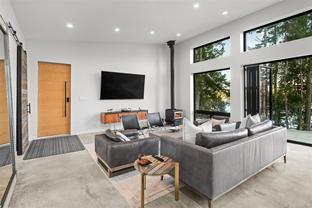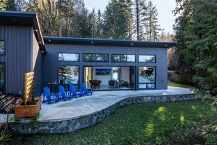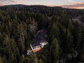 Ready to downsize but not sure about a condo…here is the perfect alternative…ideal for the lock & go lifestyle...the great room w/its wood burning stove in this contemporary OCEANFRONT duplex is the size of most 2 bed condos. The world's stresses & noises dissipate as you drive up the 1000' long driveway to 200+ lineal ft of ocean frontage on Sooke harbour. Being right on the deep water channel means whales & sailboats pass in front of your 600sf patio - prewired for hot tub. 14' ceilings…32' glass wall….all concrete ICF construction w/a 12" concrete wall clad in 12" of foam between the 2 units….no noise transfer… luxury appls… massive island…. low utilities… home insurance for less than $1000. Corrugated metal & concrete panel exterior…no maintenance…polished concrete floors w/in-floor heat. No strata fees & existing zoning allows a bunkhouse or AirBnb - potentially generating $40-50k/yr. Note: meander up the driveway & watch for wild peacocks, deer & rabbits…your freeloading tenants